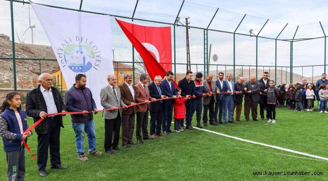 Yahyalı'da Kayseri Büyükşehir Belediyesi ve Yahyalı Belediyesi iş birliğiyle Taşhan Mahallesi Ortaokulu bahçesine yaptırılan halı saha, törenle hizmete açıldı.