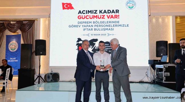 Talas Belediye Başkanı Mustafa Yalçın, 11 ili derinden etkileyen Kahramanmaraş merkezli depremlerde görev yapan belediye personeliyle iftarda buluştu. Başkan Yalçın, bölgede yapılan çalışmalardan övgüyle bahsederek, "Sizlerle gurur duyuyoruz. Bizim yüzümüzü ağarttınız. Allah sizden razı olsun, bir daha böyle acılar yaşatmasın" dedi.