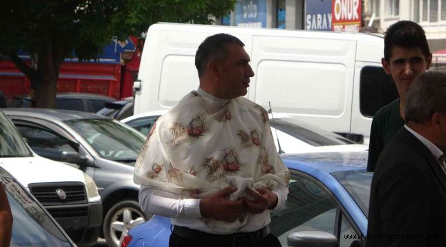 Bu sırada, vatandaşlar da meraklı gözlerle ekiplerin çalışmalarını dikkatli bir şekilde izleyerek telefonları ile kaydetti. Kuafördeki tıraşını bırakıp penuar ile alana gelen bir vatandaş da, meraklı gözlerle olup biteni izledi. Vatandaşın penuarı tutarak ekipleri izlemesi ilginç görüntüler ortaya çıkardı.