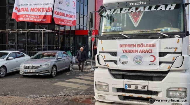 Kışlık kıyafet ile battaniye başta olmak üzere, su, gıda ürünleri, yatak ve ısıtıcı gibi malzemeleri içeren yardım TIR'ı Kızılay Talas Şubesinden yola çıktı. Konuyla ilgili değerlendirmede bulunan Talas Kaymakamı Yaşar Dönmez, yaşanan deprem felaketini son yüzyılın en büyük felaketi olduğunun altını çizerek, büyük bir dayanışma içerisinde ve hızlı şekilde yardımların oluşturarak afet bölgesine gönderildiğini belirtti. Talas'tan gönderilen 12. yardım TIR'ı olduğunu söyleyen Kaymakam Dönmez, "Son yüzyılın en büyük felaketini yaşıyoruz. Öncelikle hayatını kaybeden vatandaşlarımıza Allah'tan rahmet diliyoruz. Yaralı vatandaşlarımıza da acil şifalar diliyoruz. Devletimiz, milletimiz el ele ve deprem bölgesindeki yaraları sarmak için çok büyük mücadele veriyoruz. İnşallah kısa bir süre içerisinde depremin yaralarını da saracağız. Yola çıkacak olan bu araç, Talas Belediyesi ile birlikte başlattığımız kampanya çerçevesinde Türk Kızılayımızdan giden 4. TIR. Bununla birlikte ilçemizden giden de 12. TIR. Burada çok yoğun ve mükemmel bir iş yapılıyor. Gelen yardım ürünleri ayrıştırılıp ambalajlanıyor. Bu nedenle Kızılay yöneticilerimize ve gönüllü arkadaşlarımıza teşekkür ediyoruz. Allah bir daha böyle acıları milletimize göstermesin" dedi.