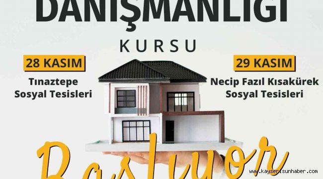 Melikgazi Belediyesi'nin MELMEK çerçevesinde düzenlediği Emlak Danışmanlığı kursu Tınaztepe ve Necip Fazıl Kısakürek Sosyal Tesislerinde başlıyor.