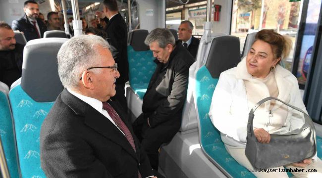 Yolcularla da sohbet eden Büyükkılıç, sarı kırmızı renkli, Erciyes Dağı motifli yeni tramvayların da hayırlı olmasını temenni etti.