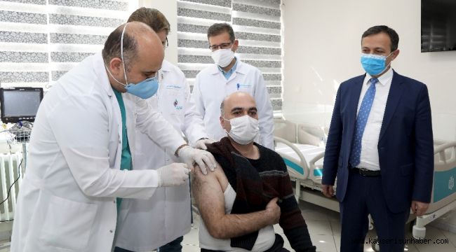 Erciyes Üniversitesi Aşı Araştırma ve Geliştirme Uygulama ve Araştırma Merkezi'nde (ERAGEM) Covid-19'a karşı geliştirilen ve Sağlık Bakanlığı ile Türkiye Sağlık Enstitüleri Başkanlığı (TÜSEB) tarafından desteklenen inaktif aşı adayının Faz-2 çalışmaları kapsamında ilk dozu Erciyes Üniversitesi İyi Klinik Uygulama ve Araştırma Merkezi'nde (İKUM) bir gönüllüye uygulandı. Aday aşının Faz-2 doz uygulama gönüllüsü yaptığı açıklamada aşı çalışmalarına gönüllü olarak katılmaktan mutlu olduğunu belirterek, yerli aşının gurur verici olduğunu söyledi. Aşı çalışmaları hakkında açıklamada bulunan Erciyes Üniversitesi Rektörü Prof. Dr. Mustafa Çalış, şunları kaydetti: