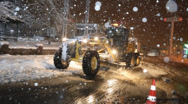 Melikgazi Belediyesi, ilçenin yüksek kesimlerinde başlayan kar yağışından sonra karla mücadele çalışmalarına başlayarak sabaha yolları açık hale getirdi.
