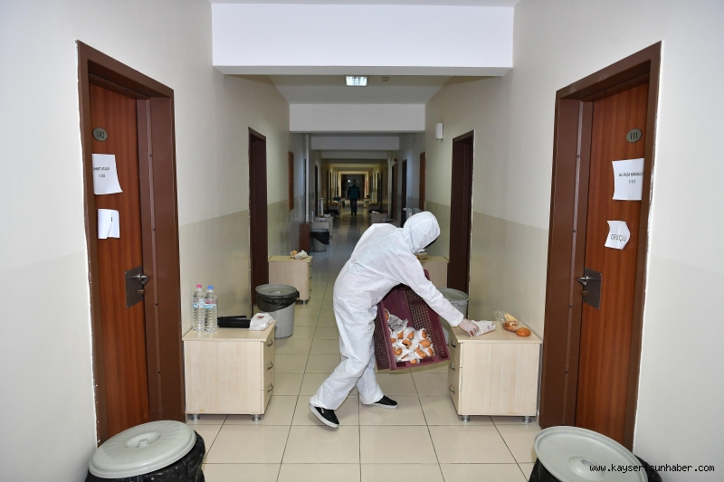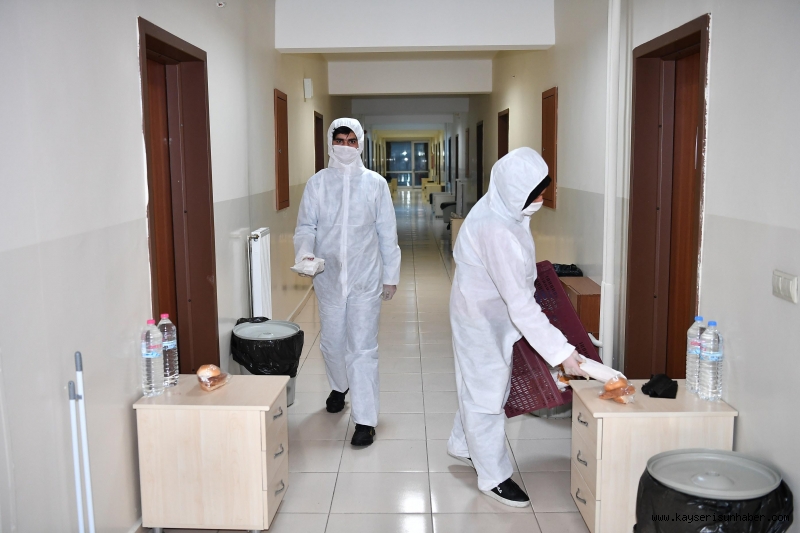 Kayseri Büyükşehir Belediyesi'nce, koronavirüs tedbirleri kapsamında yurtta gözlem altında tutulan 200 kişiye, mangalda sucuk ekmek yapılarak ikram edildi.