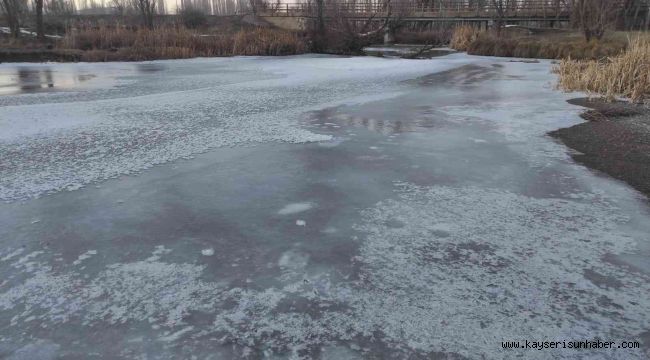 Kayseri'nin Tomarza ilçesinde bulunan Zamantı Irmağı'nda su seviyesi düşerken, suyun yavaş aktığı kısımlar ise buz tuttu.
