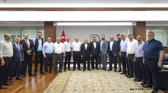 Kayseri Büyükşehir Belediye Başkanı Dr. Memduh Büyükkılıç, Kayseri Ziraat Odaları İl Koordinasyon Kurulu ve Kocasinan Ziraat Odası Başkanı Abdulkadir Güneş ve ilçe ziraat odası başkanlarını makamında ağırladı. Çiftçi temsilcileri, Başkan Büyükkılıç'a, tarım ve hayvancılığa verdiği desteklerinden dolayı teşekkür etti.